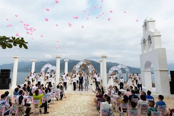 陵水分界洲岛旅游区在此间举行“亲爱的·520”第二届海南分界洲岛集体婚礼,来自国内外的25对情人在婆娑椰影与海浪声中,完成生命中一次极其重要的定格。