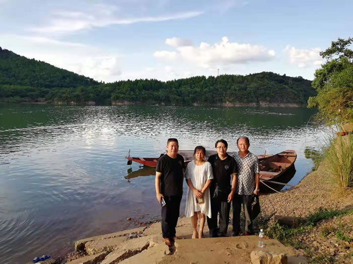 图:村民在线总经理甄仕荣(右1)、永州市中草医药研究会会长胡莽(左1)陪同荣氏家族企业办公室主任陶美云女士、88国际和谐日创始人、刘欢学生唐良闻(唐开元)(右2)考察湘江两岸,拟选址建设早商网朝阳产业广场(摄影:唐曼夏)