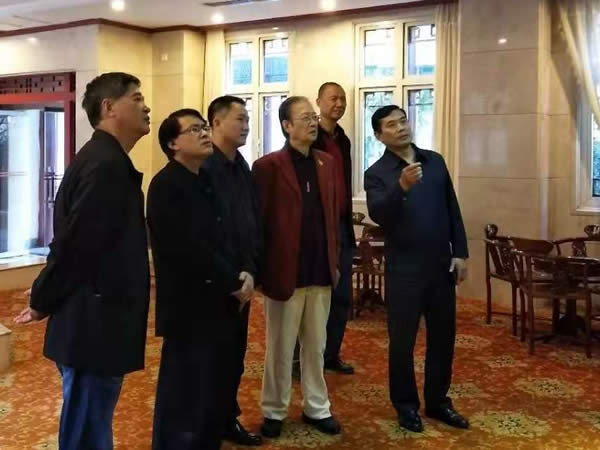 图二:聂江向刘建吉、唐开元等人介绍重庆红楼宾馆