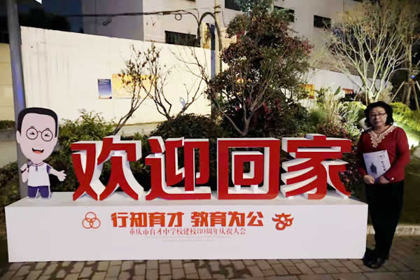 图2:陶娃说“欢迎回家”参加重庆市育才中学建校80周年庆典