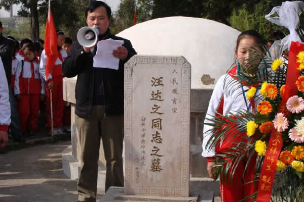 图六:江苏省淮安市新安小学师生代表祭扫人民教育家汪达之先生之墓