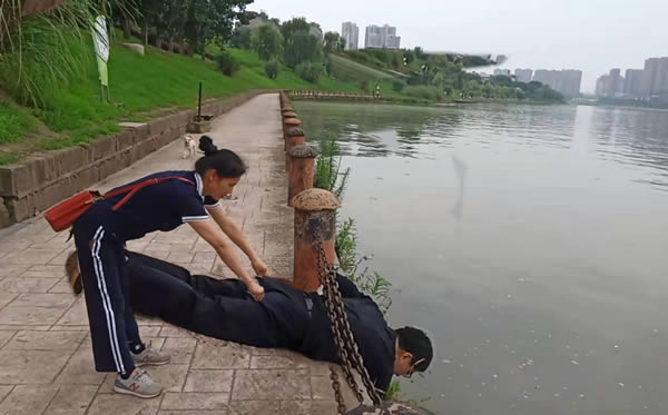 遛狗女子与内江师院学生“猴子捞月”救落水人