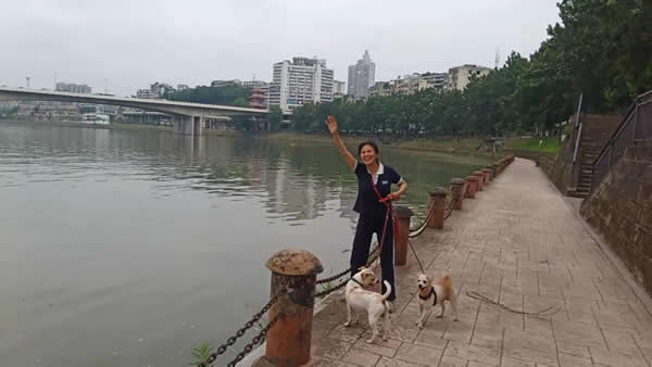 图三:陈辉女士时常在内江师范学院对面的甜城湖畔遛狗(唐良闻补拍)