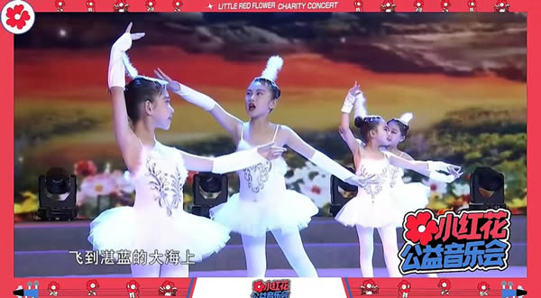 图四:“大手牵小手”小红花公益音乐会上少年儿童载歌载舞
