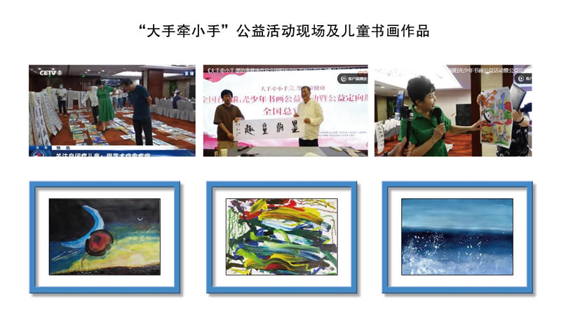 图五:“大手牵小手”阳光少年书画公益工程活动现场及作品